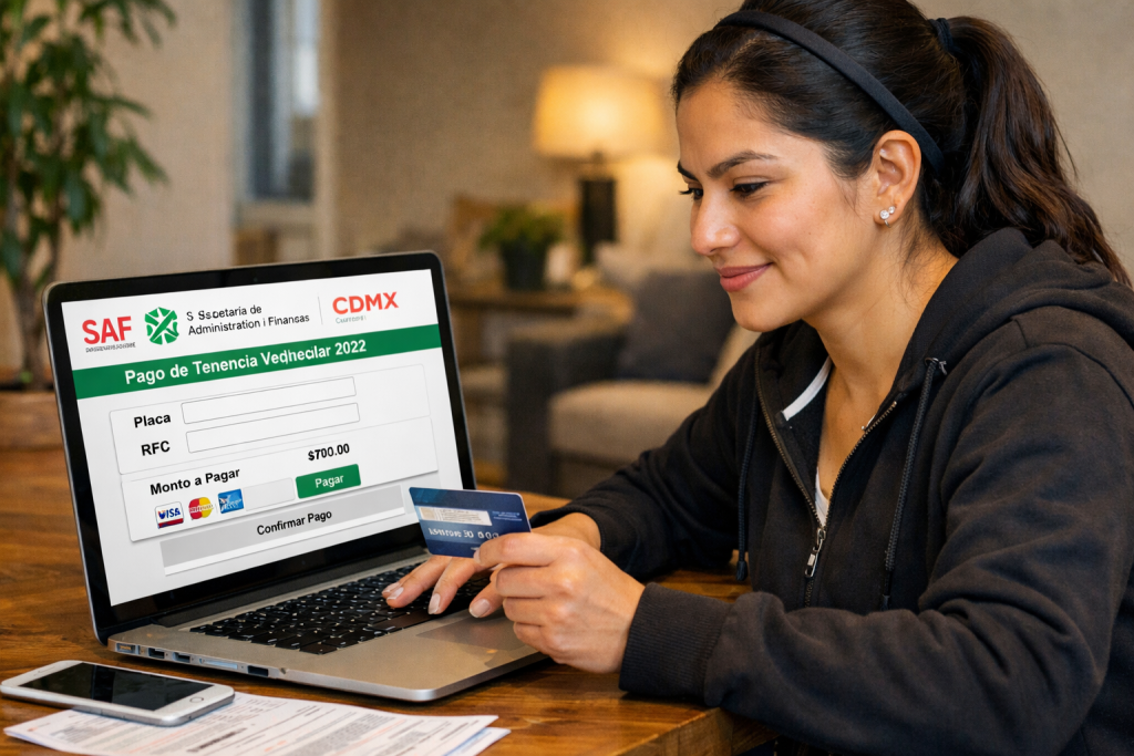 El trámite se realiza de forma presencial o a través de la plataforma en línea de la Secretaría de Administración y Finanzas o desde la app Tesorería CDMX.